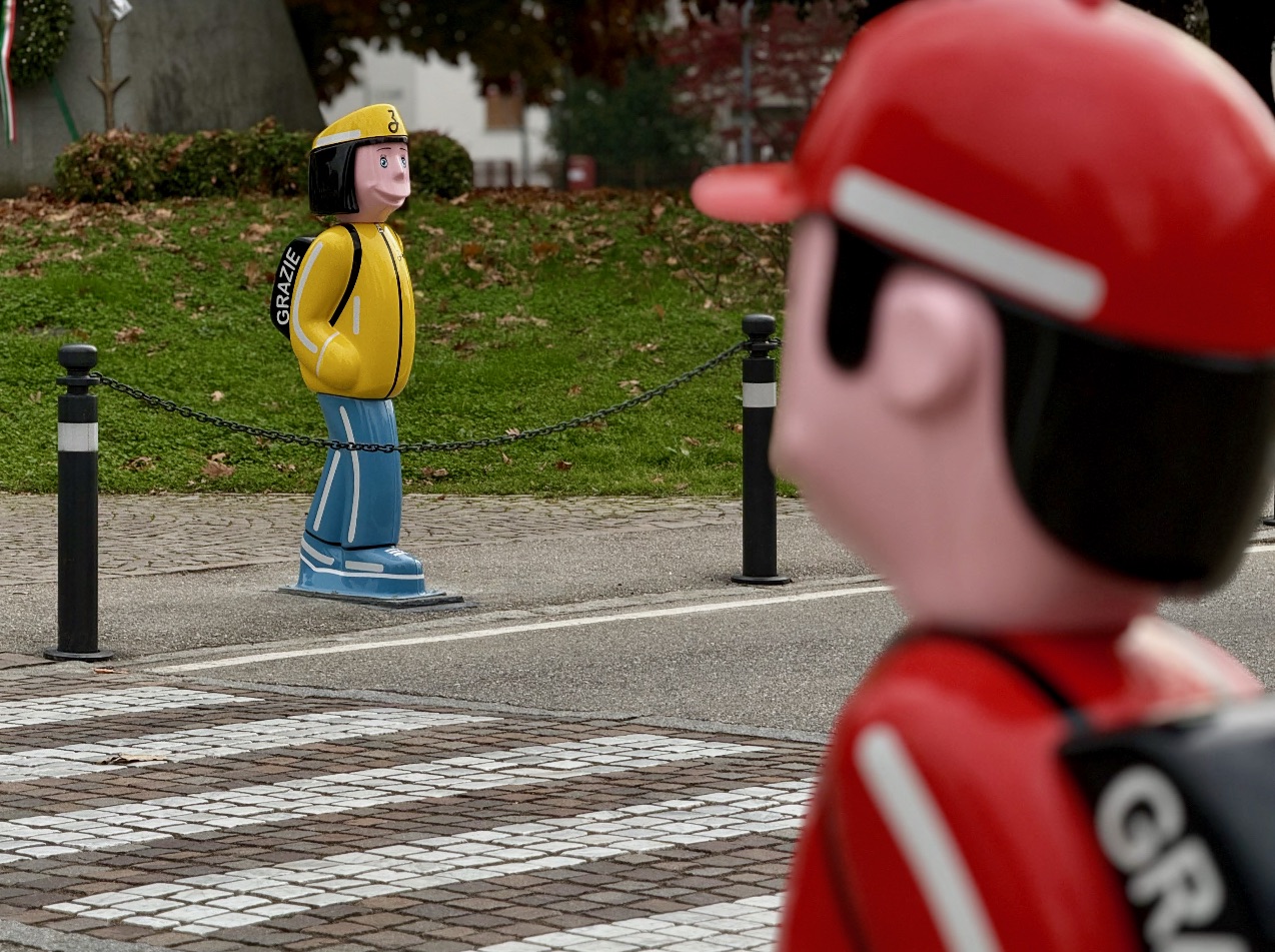Si chiamano Arthur e Zoè e da qualche giorno affiancano l’attraversamento pedonale di via Piatti, vicino alle scuole. Sugli zaini: «Grazie»