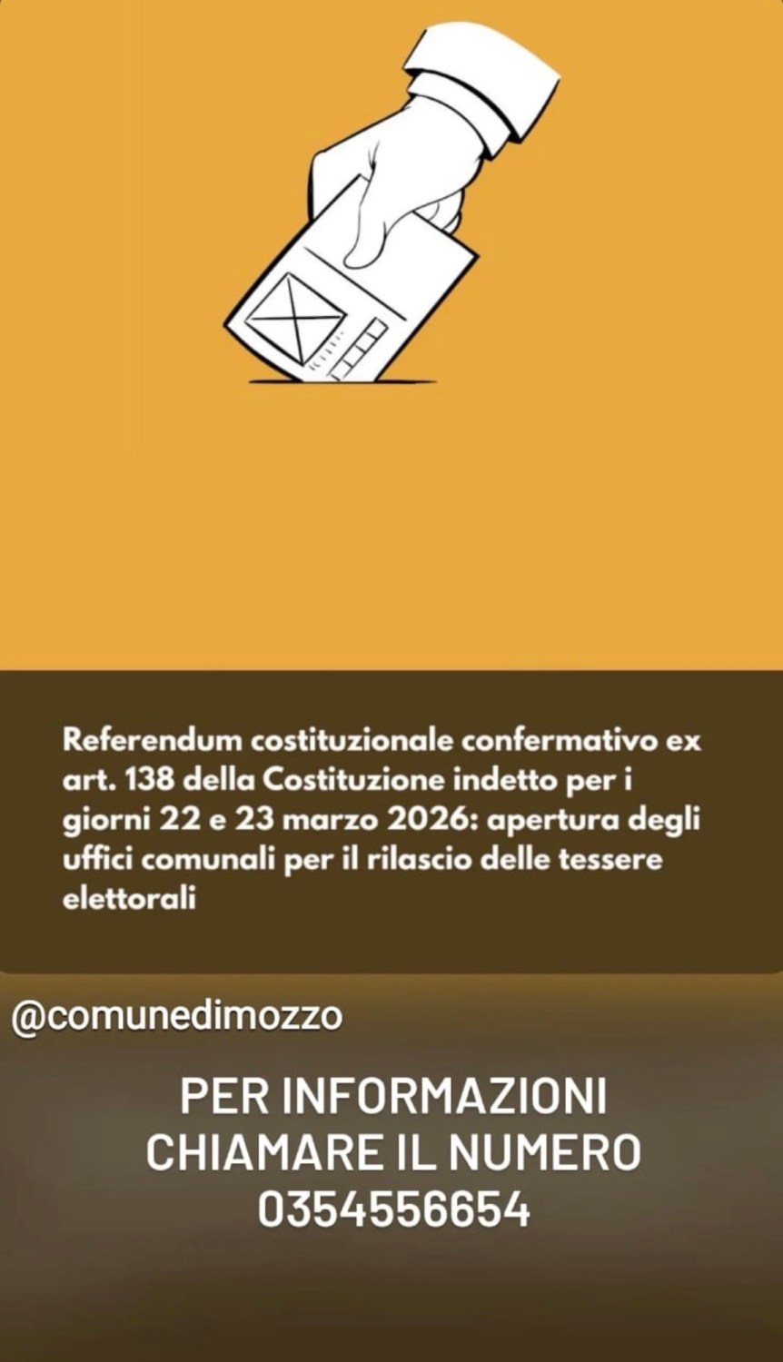 giorni della votazione (domenica 22 e lunedì 23 marzo 2026) operazioni di votazione, cioè dalle ore 7 alle ore 23 di domenicae dalle ore 7 alle ore 15 di lunedì.