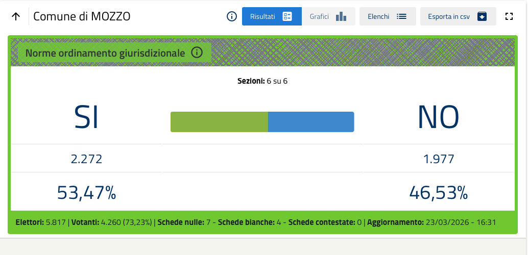 Mozzo/Referendum: dati definitivi (Eligendo- Ministero Interni) admin23 marzo 202623 marzo 2026blog post Navigazione articoli Precedente Condividi:CondivisioneTweet Stampa (Si apre in una nuova finestra) Stampa Invia un link a un amico via e-mail (Si apre in una nuova finestra) E-mail Mi piace Caricamento... Correlati